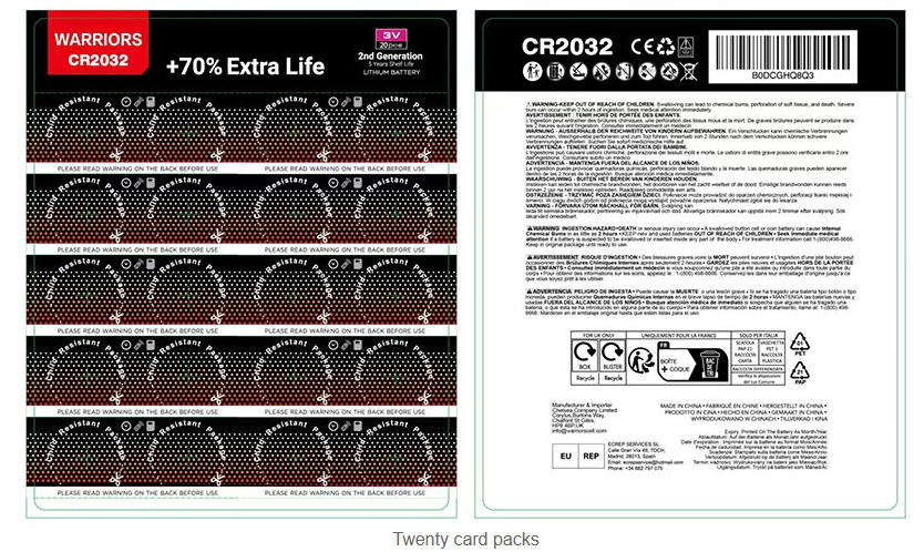 Warriors, ein erfahrener Hersteller mit 16 Jahren Erfahrung, produziert hochwertige Lithium-Mangan-Batterien für medizinische, Sicherheits- und IoT-Anwendungen. Mit modernen Produktionsanlagen in China gewährleistet Warriors außergewöhnliche Konsistenz und erreicht durch automatisierte visuelle Erkennungssysteme eine Fehlerrate von nur 1 zu 100.000. Zu den Batterien, darunter Modelle wie CR2032 Lithium-Knopfzellenbatterie Und CR2450 Lithium-Mangan-Batterien, bieten eine stabile Spannung und hohe Gleichmäßigkeit (>96 %) bei einem jährlichen Kapazitätsverlust von unter 6 %.